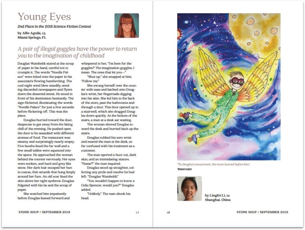 Stone Soup, the literary magazine and website written and illustrated by and for kids age 13 and under, has been inspiring children to read, write, and create their own pieces and artwork for publication since 1973.